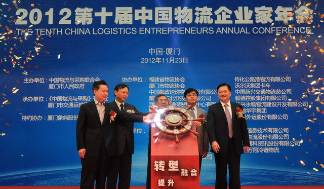 借著舉國上下貫徹落實十八大精神的東風,11月23日,2012第十屆中國物流企業(yè)家年會在廈門隆重舉行。本屆年會由中國物流與采購聯(lián)合會及廈門市人民政府主辦、《中國物流與采購》雜志社及廈門市交通運輸局承辦、象嶼股份特約協(xié)辦,以“轉型、融合、提升、共贏”為主題,為物流界精英們量身打造了一個暢所欲言、創(chuàng)新思維的平臺,來自國內知名物流企業(yè)、政府部門及相關協(xié)會和研究機構的上千名物流大腕精英參加了此次會議。