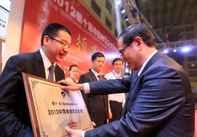 2012中國物流杰出企業(yè)頒獎(jiǎng)現(xiàn)場(chǎng),廈門象嶼股份有限公司榮獲“2012中國物流杰出企業(yè)”稱號(hào)