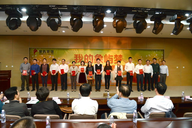 集團(tuán)公司王龍雛董事長(zhǎng)、邵蕰默副書(shū)記、陳偉彬原副書(shū)記、象嶼保稅區(qū)管委會(huì)薛志宏處長(zhǎng)、集團(tuán)公司劉信平副總裁、林志勇總裁助理等為征文、攝影、演講比賽獲獎(jiǎng)人員頒獎(jiǎng)。