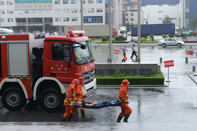 為了提高廈門國際航運(yùn)中心全員的應(yīng)急應(yīng)變能力,以全國第十三個(gè)“安全生產(chǎn)月”為契機(jī),6月19日下午,2014年象嶼保稅區(qū)應(yīng)急綜合聯(lián)動(dòng)演練在此成功舉辦。此次演練由象嶼保稅區(qū)管委會(huì)安監(jiān)局主辦,象嶼集團(tuán)、象嶼高尚物業(yè)承辦,湖里派出所、湖里消防八中隊(duì)、象嶼集團(tuán)員工代表、高尚物業(yè)公司全體員工及航運(yùn)中心租戶代表逾百人參加了此次演練。