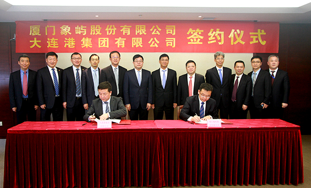 1月7日,大連港集團董事長張乙明一行到訪象嶼集團,與象嶼集團董事長張水利等就雙方合作展開交流和討論。會談結束后舉行了合作簽約儀式,象嶼股份鄧啟東總經理與大連港股份魏明暉總經理分別代表雙方公司在《戰(zhàn)略合作框架協議》上簽字。此次戰(zhàn)略合作的簽署,將進一步發(fā)揮雙方的產業(yè)優(yōu)勢,鞏固并延伸雙方在港口物流、貿易、資本層面的深度合作。